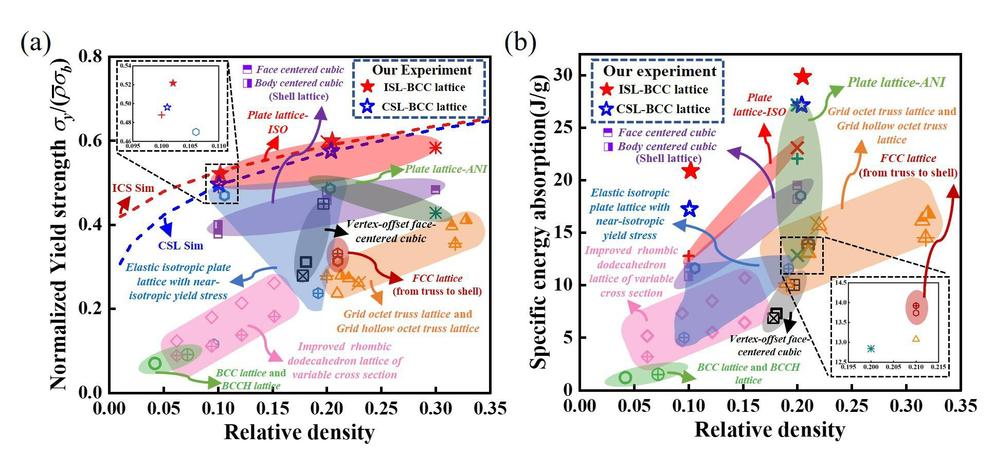 近日,航天学院复合材料与结构研究所谭惠丰教授和陈雪岩副教授课题组在机械超材料领域取得重要进展,相关成果以“Shell-lattice metamaterials with intrinsic contact stabilization for exceptional mechanical performance and nonlinear stability”为题,发表在力学领域权威期刊《Journal of the Mechanics and Physics of Solids》上。该研究为在低相对密度条件下同步提升点阵材料的强度、非线性与稳定性提供了可行路径。